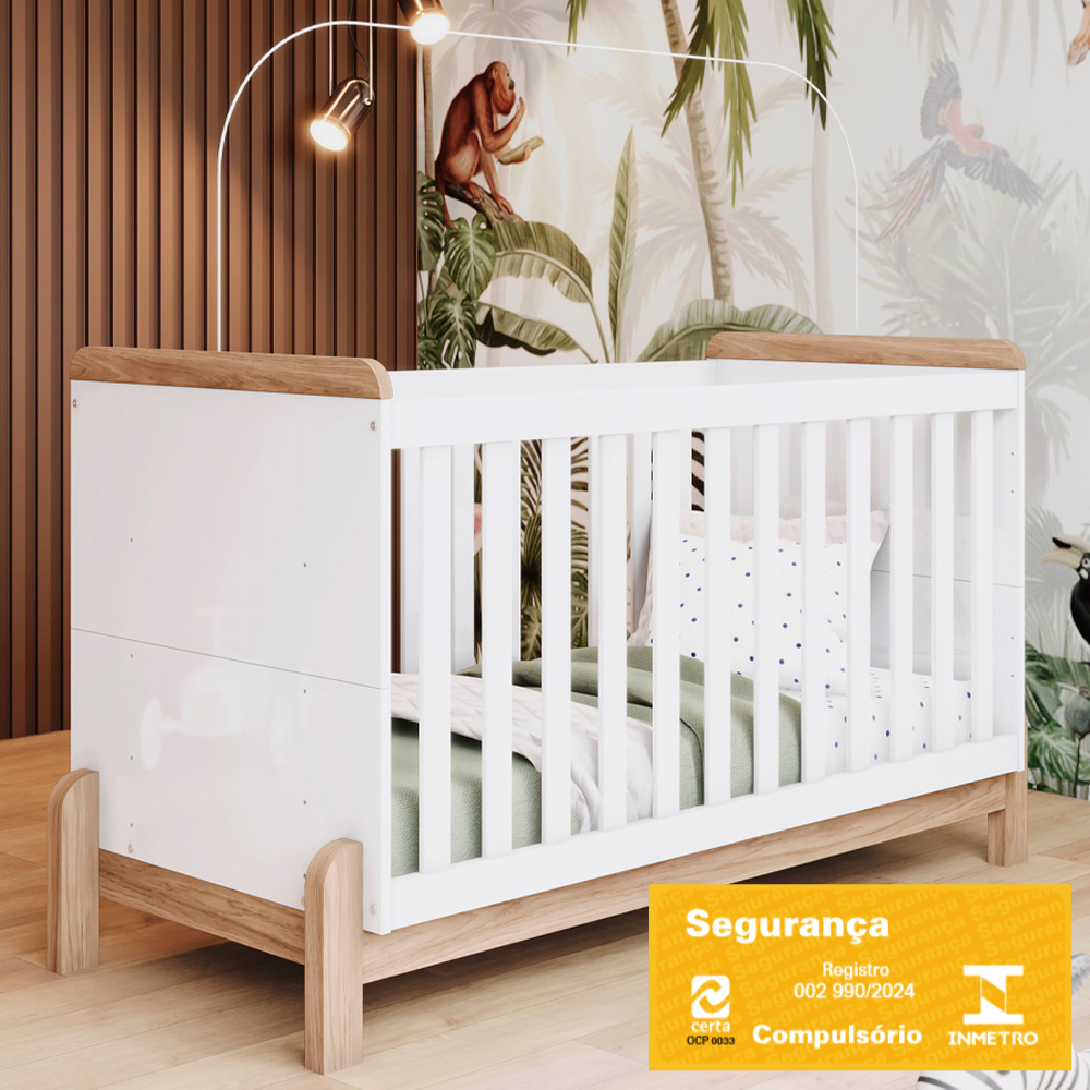 Berço Mini Cama Ternura, acolhedor com design funcional para compor o quarto com segurança desde os primeiros dias! Aprovado e certificado conforme regulamento do INMETRO (Registro Nº 002 990/2024) o móvel é produzido em MDP e MDF (06/15/25 mm) com pintura UV texturizada. Composto por cabeceiras em MDP (15 mm) com bordas arredondadas, grades fixas em MDF (06 mm) e estrado também em MDF (25 mm), acompanha suporte de mosquiteiro. Com design 2 em 1 que acompanha o crescimento do bebê, transformando-se em mini-cama com praticidade e segurança. Estrado possui 2 opções de regulagem de altura, permitindo ajustar conforme o crescimento da criança (posição mais baixa 20 cm e posição alta 45,3 cm do estrado ao chão). Indicado para colchões de tamanho 130 cm x 70 cm. NÃO ACOMPANHA COLCHÃO E DEMAIS DECORAÇÕES. Produto será entregue em 01 volume.