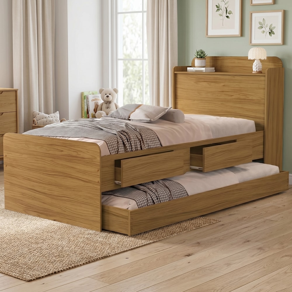 Cama Solteiro Tamires e Cama Auxiliar Mili, indispensável para quem busca funcionalidade sem abrir mão do estilo.
