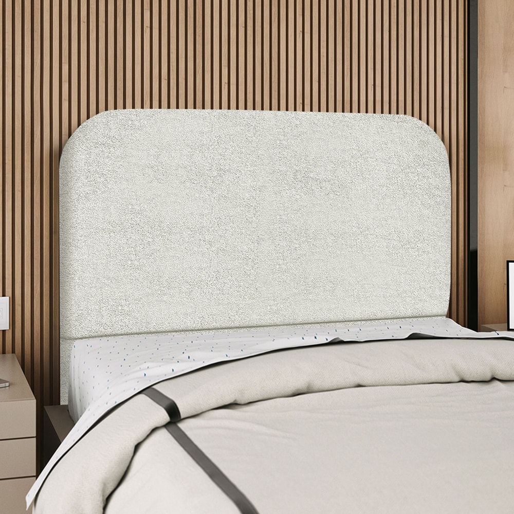 Cabeceira Casal Alana, moderna e aconchegante trazendo o design orgânico para seu quarto! Estrutura em Madeira de Eucalipto (reflorestada), estofada em espuma (densidade D-18) e revestida em tecido Bouclé (macio e texturizado) com bordas curvas. Incluso Frame (metal resistente com reforço lateral e acabamento em pintura epóxi) para fixação em camas Box e sapatas plásticas. Este produto será entregue em 1 volume.