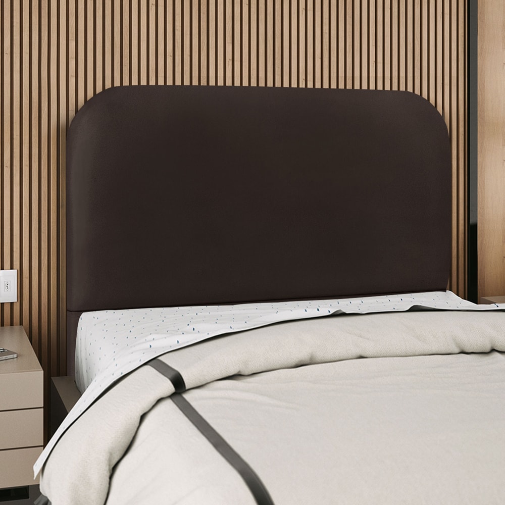 Cabeceira Casal Alana, moderna e aconchegante trazendo o design orgânico para seu quarto! Estrutura em Madeira de Eucalipto (reflorestada), estofada em espuma (densidade D-18) e revestida em tecido Corino (material sintético que lembra couro) com bordas curvas. Incluso Frame (metal resistente com reforço lateral e acabamento em pintura epóxi) para fixação em camas Box e sapatas plásticas. Este produto será entregue em 1 volume.