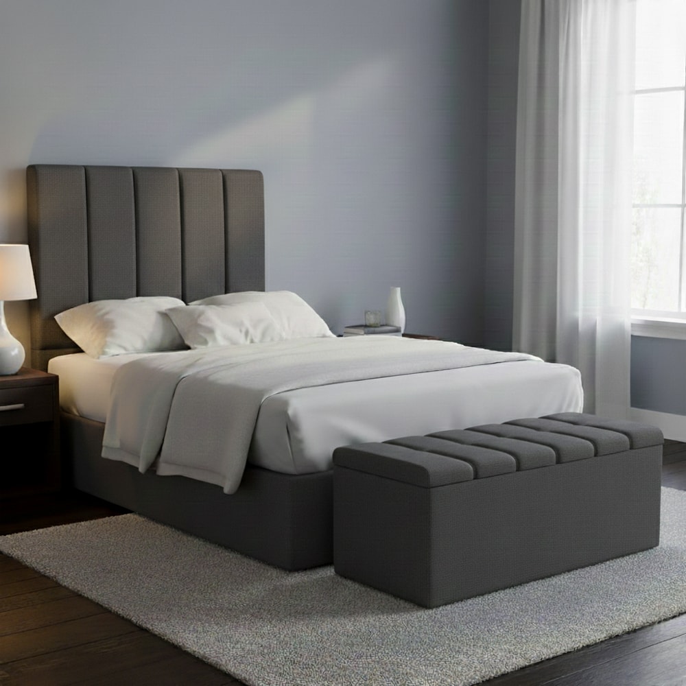 Cabeceira e Recamier Bau Solteiro 90 cm Dalia Linho Cinza Escuro Artte
