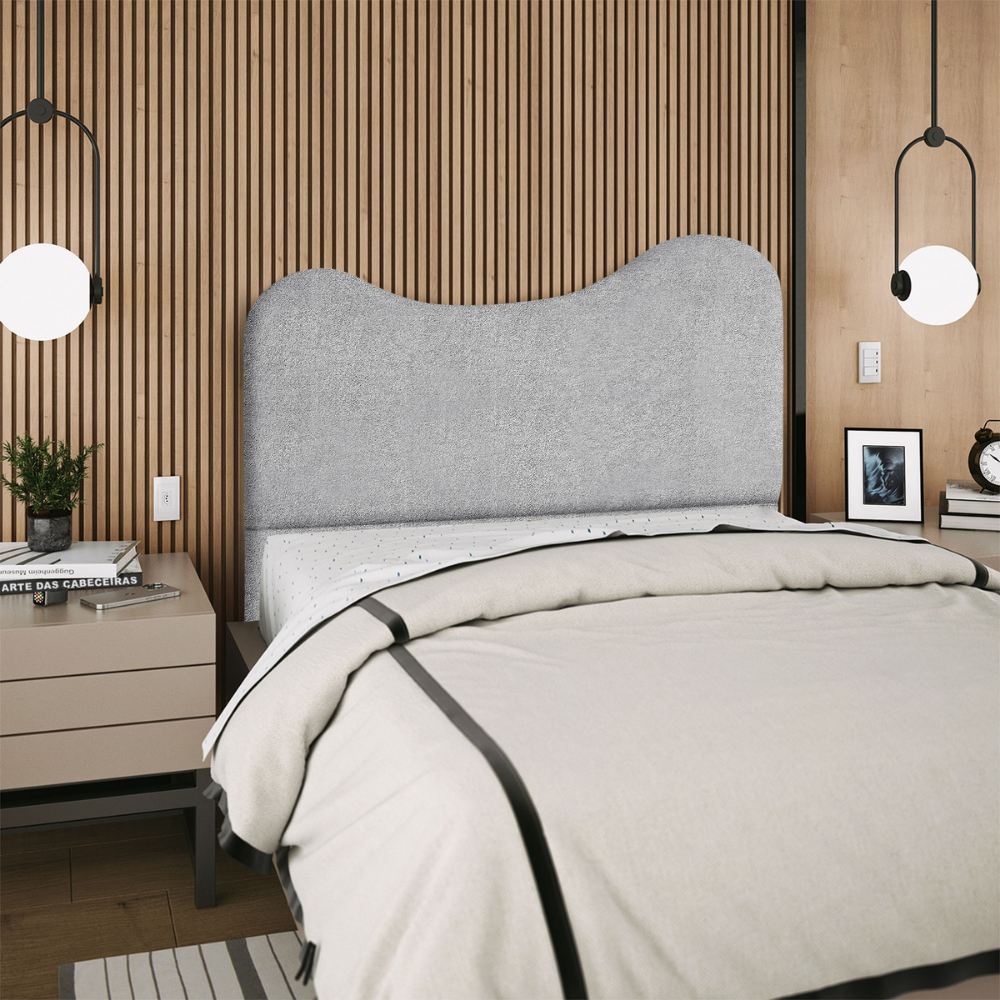 Transforme seu ambiente com a Cabeceira Selena, unindo conforto visual e estilo contemporâneo, Estrutura em Madeira Maciça de Eucalipto (reflorestada), estofamento em espuma D-18 e revestimento em tecido Bouclé (resistente, macio e confortável). Possui sapatas plásticas que evitam o contato direto com o piso e ajudam a prevenir riscos. Incluso Frame (metal resistente com reforço lateral e acabamento em pintura epóxi) para fixação em camas Box, pode haver variação no design do frame dependendo do lote de peças. A função do acessório e usabilidade permanece a mesma. Demais decorações não inclusas. Produto entregue em 1 volume.