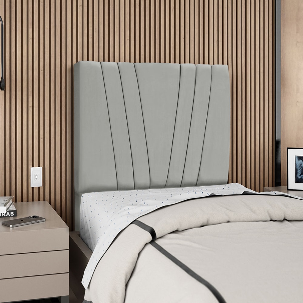 Cabeceira Solteiro 100 cm Com Frame Belgica Suede Cinza Claro Artte