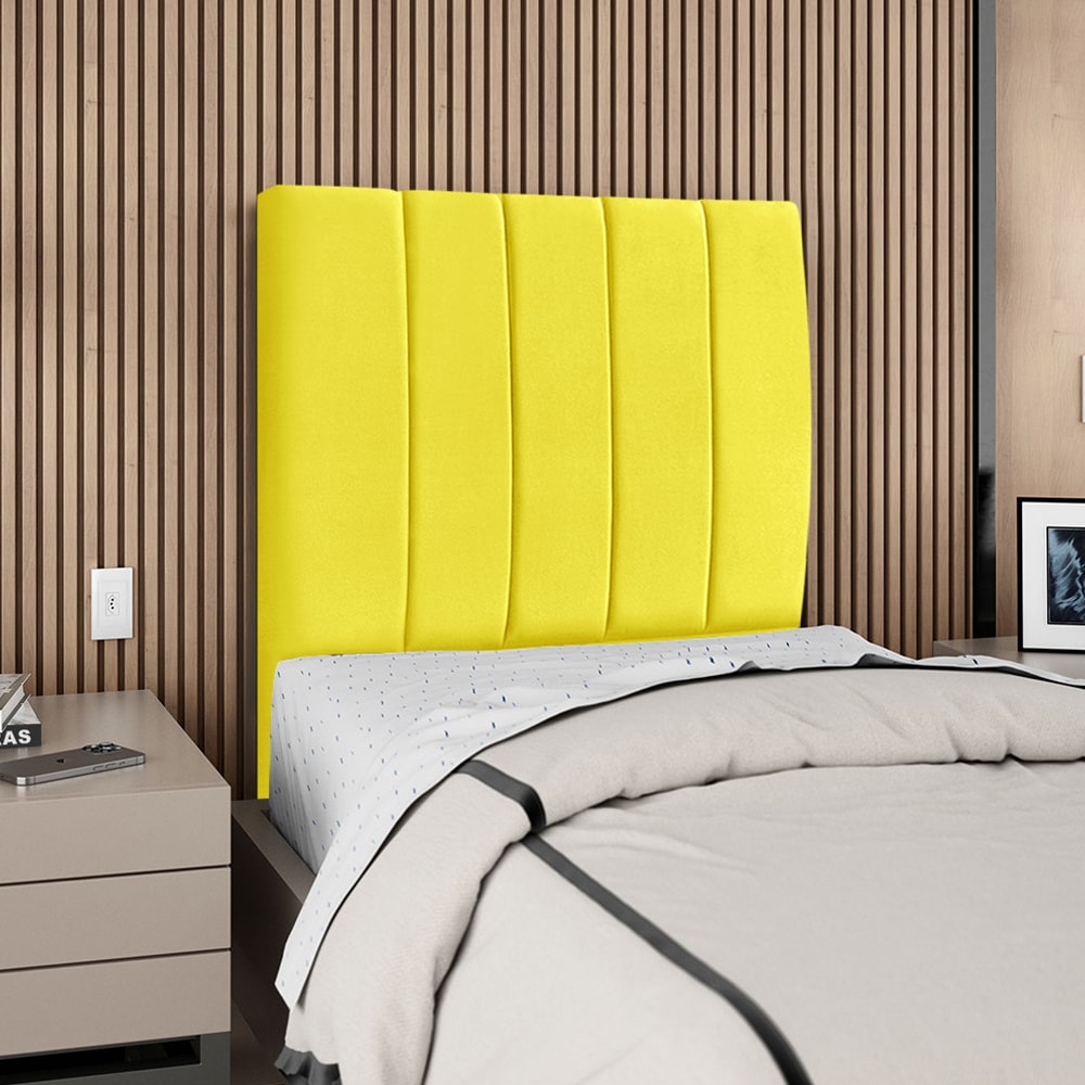 Cabeceira Solteiro 100 cm Com Frame Carla Suede Amarelo Artte