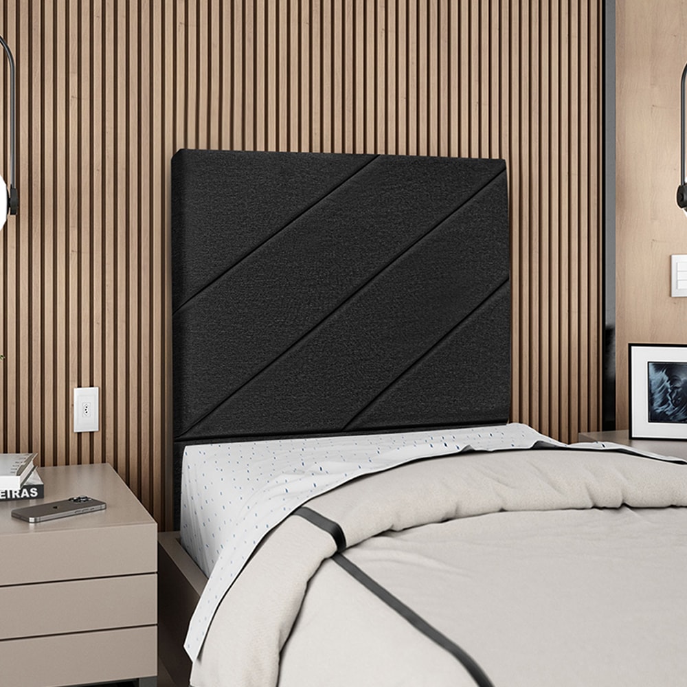 Cabeceira Solteiro 100 cm Com Frame Cristal Linho Preto Artte