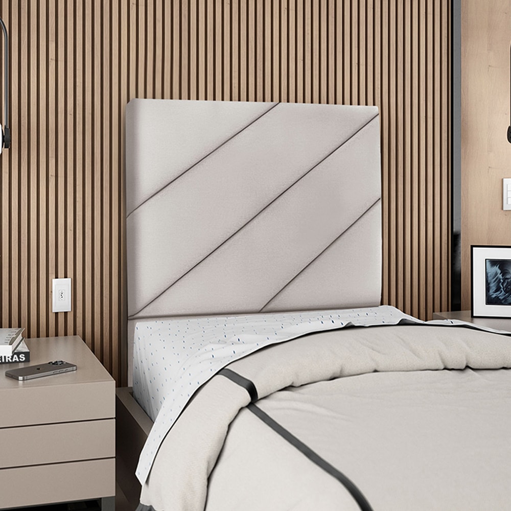 Cabeceira Solteiro 100 cm Com Frame Cristal Suede Cinza Claro Artte