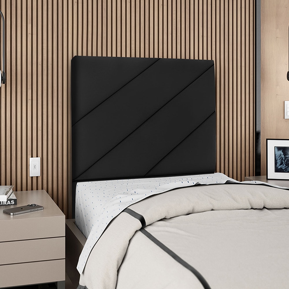 Cabeceira Solteiro 100 cm Com Frame Cristal Suede Preto Artte