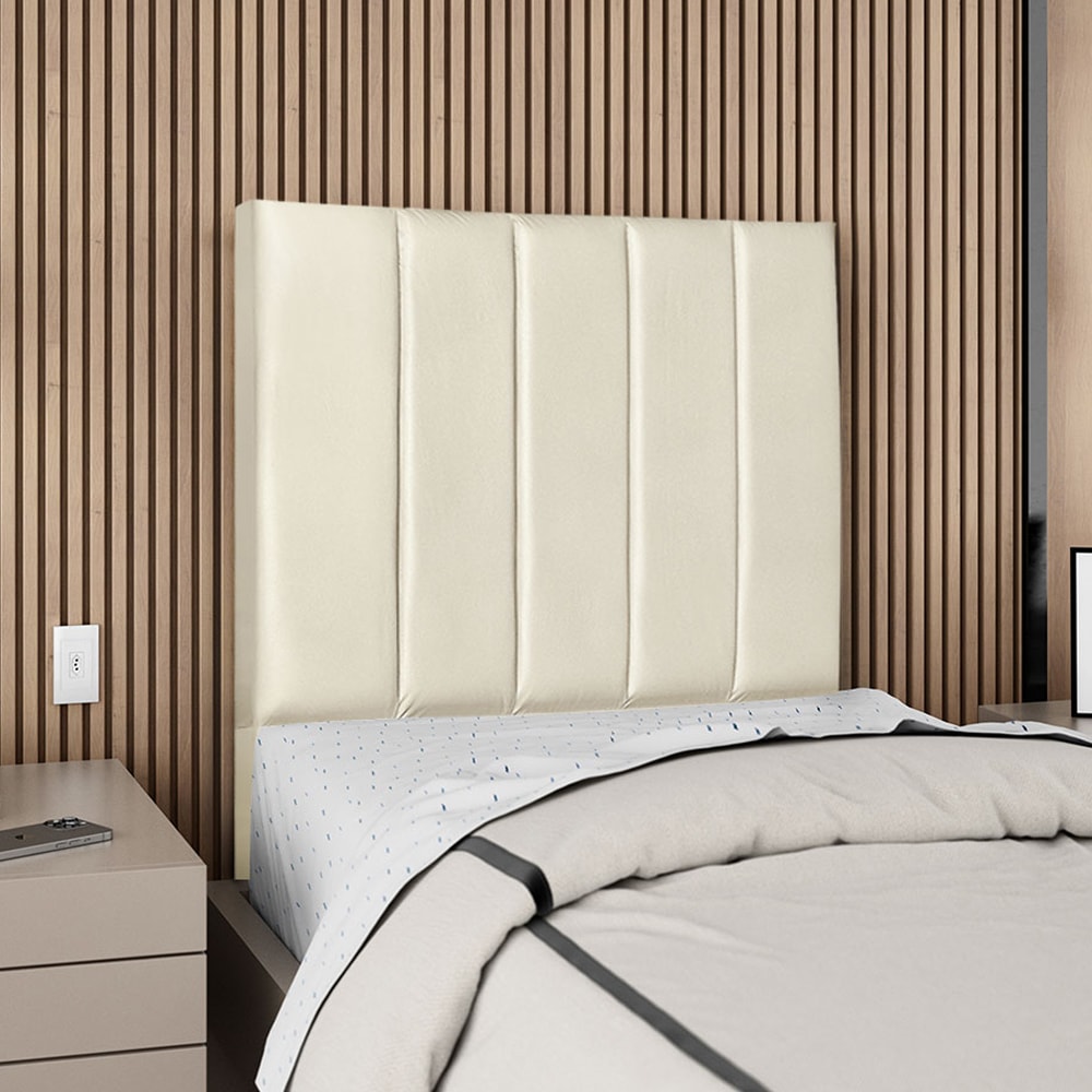 Cabeceira Solteiro Dalia, modelo aconchegante trazendo um design moderno para seu quarto! Estrutura em Madeira de Eucalipto (reflorestada), estofada em espuma (densidade D-18) e revestida em tecido Corino (material sintético que lembra couro). Incluso Frame (metal resistente com reforço lateral e acabamento em pintura epóxi) para fixação em camas Box e sapatas plásticas. Pode haver variação no design do frame dependendo do lote de peças. A função do acessório e usabilidade permanece a mesma. Este produto será entregue em 1 volume.