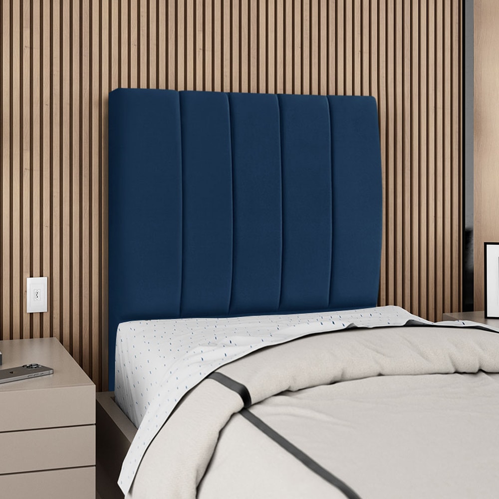 Cabeceira Solteiro 100 cm Com Frame Dalia Suede Azul Marinho Artte