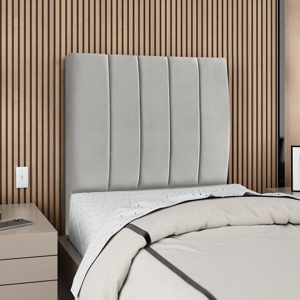 Cabeceira Solteiro 100 cm Com Frame Dalia Suede Cinza Claro Artte