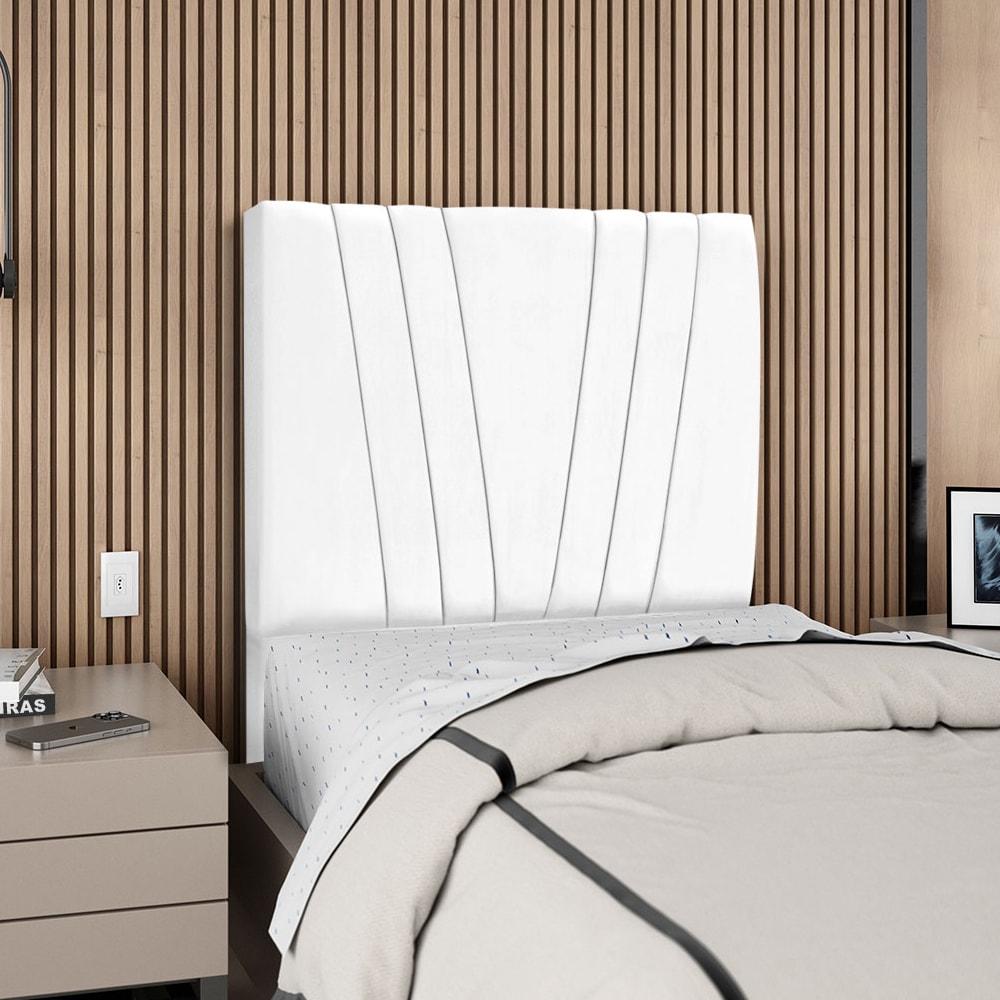Cabeceira Solteiro 90 cm Com Frame Belgica Suede Branco Artte