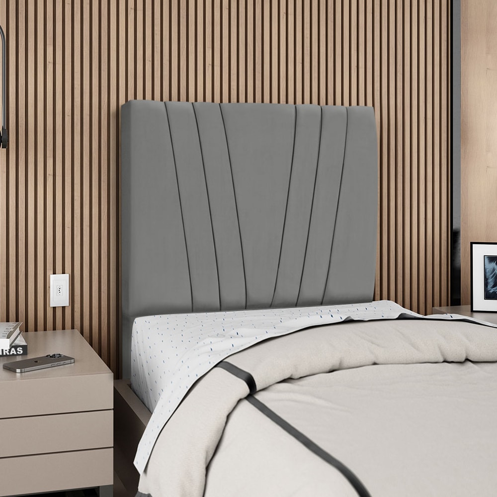 Cabeceira Solteiro 90 cm Com Frame Belgica Suede Cinza Artte