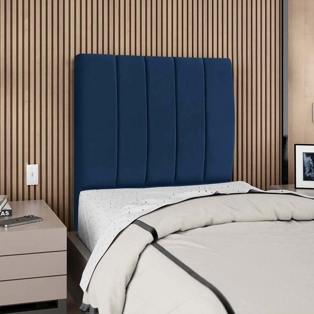 Cabeceira Solteiro 90 cm Com Frame Carla Suede Azul Marinho Artte