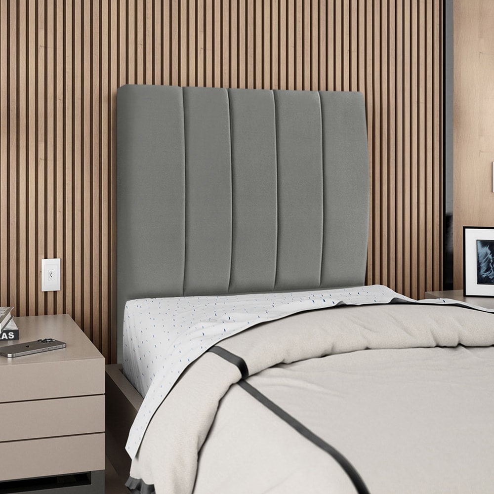 Cabeceira Solteiro 90 cm Com Frame Carla Suede Cinza Artte