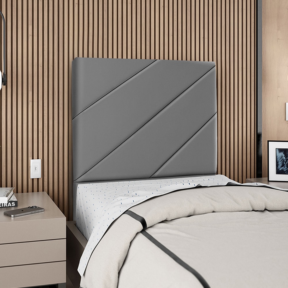 Cabeceira Solteiro 90 cm Com Frame Cristal Corino Cinza Artte