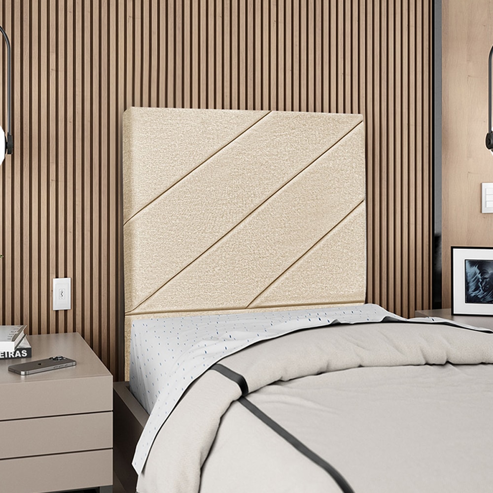 Cabeceira Solteiro 90 cm Com Frame Cristal Linho Bege Artte