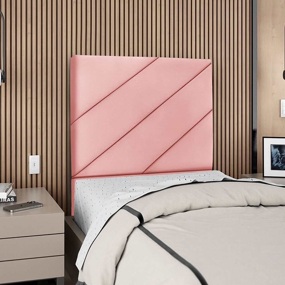 Cabeceira Solteiro 90 cm Com Frame Cristal Suede Rosa Artte