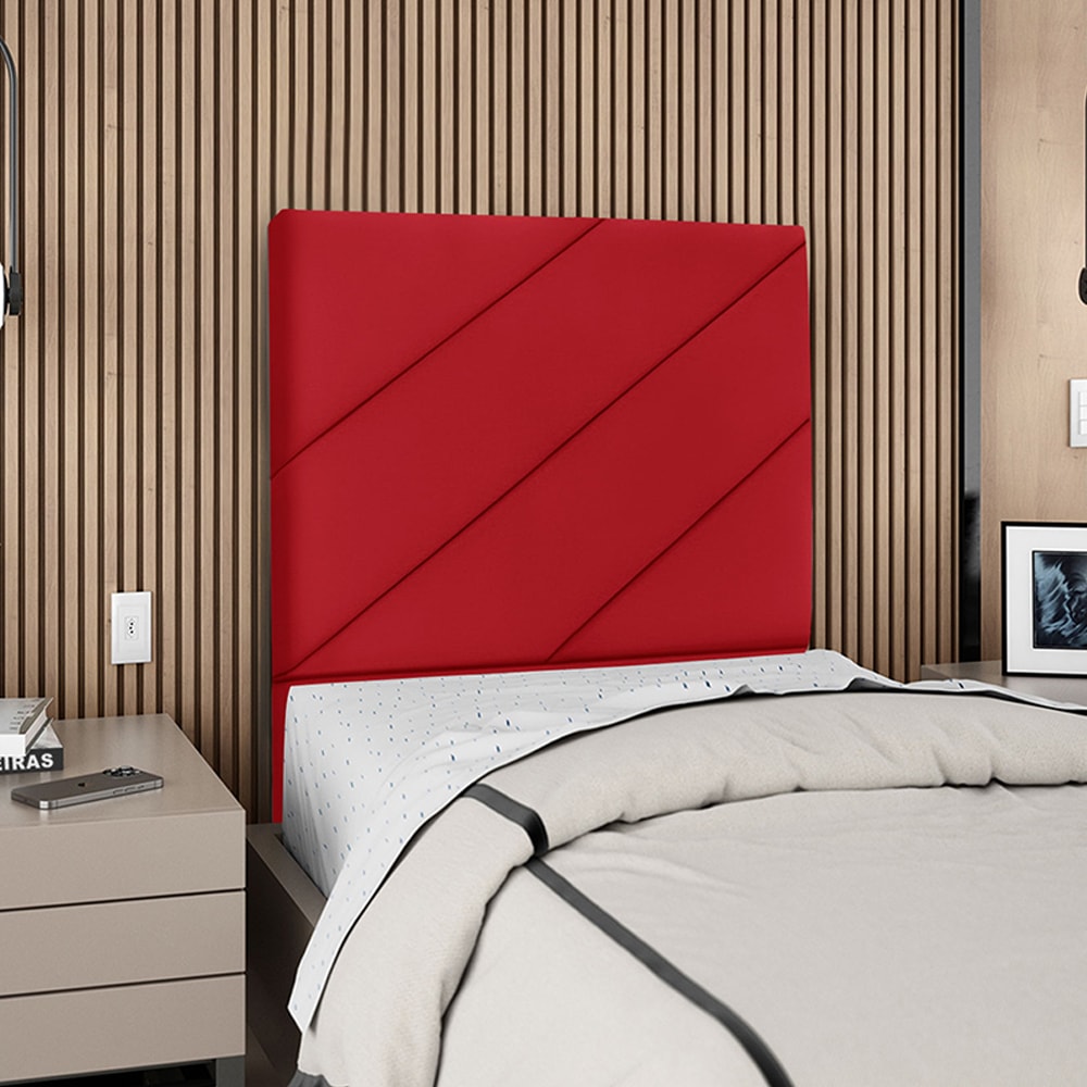 Cabeceira Solteiro 90 cm Com Frame Cristal Suede Vermelho Artte