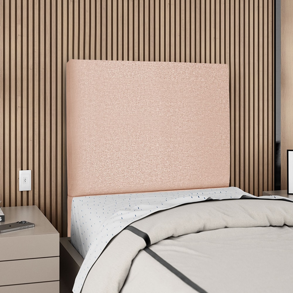 Cabeceira Solteiro Luna, moderna e aconchegante trazendo elegância para seu quarto! Estrutura em Madeira de Eucalipto (reflorestada), estofada em espuma (densidade D-18) e revestida em tecido Linho (resistente e levemente texturizado). Incluso Frame (metal resistente com reforço lateral e acabamento em pintura epóxi) para fixação em camas Box e sapatas plásticas. Este produto será entregue em 1 volume.
