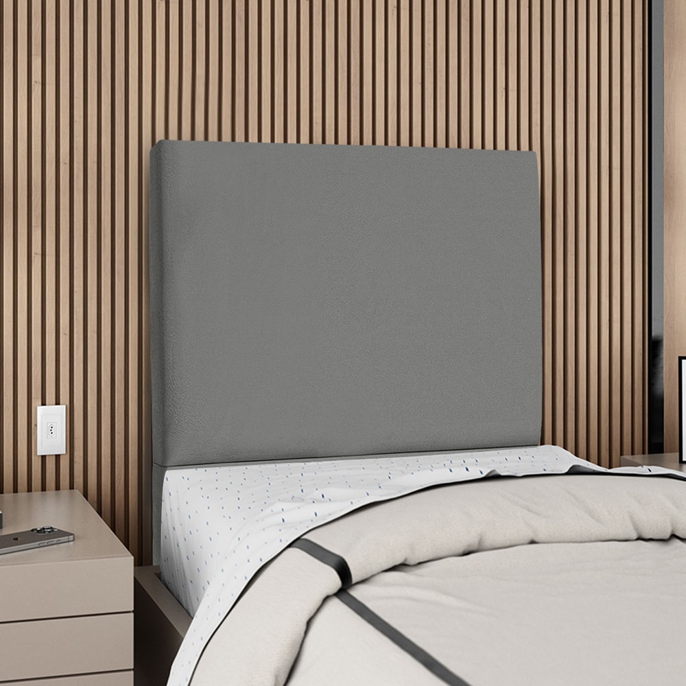 Cabeceira Solteiro Luna, moderna e aconchegante trazendo elegância para seu quarto! Estrutura em Madeira de Eucalipto (reflorestada), estofada em espuma (densidade D-18) e revestida em tecido Suede (clássico aveludado com toque suave). Incluso Frame (metal resistente com reforço lateral e acabamento em pintura epóxi) para fixação em camas Box e sapatas plásticas. Este produto será entregue em 1 volume.