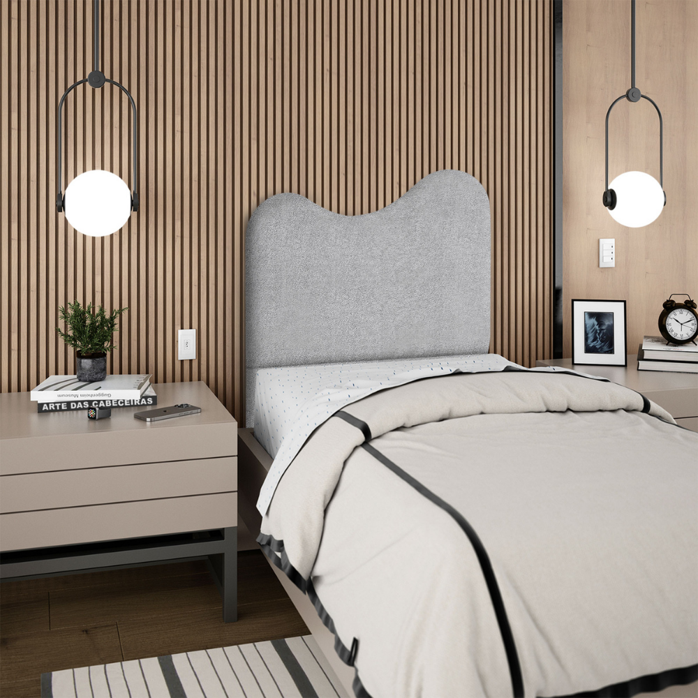 Cabeceira Solteiro 90 cm Com Frame Selena Boucle Cinza Artte