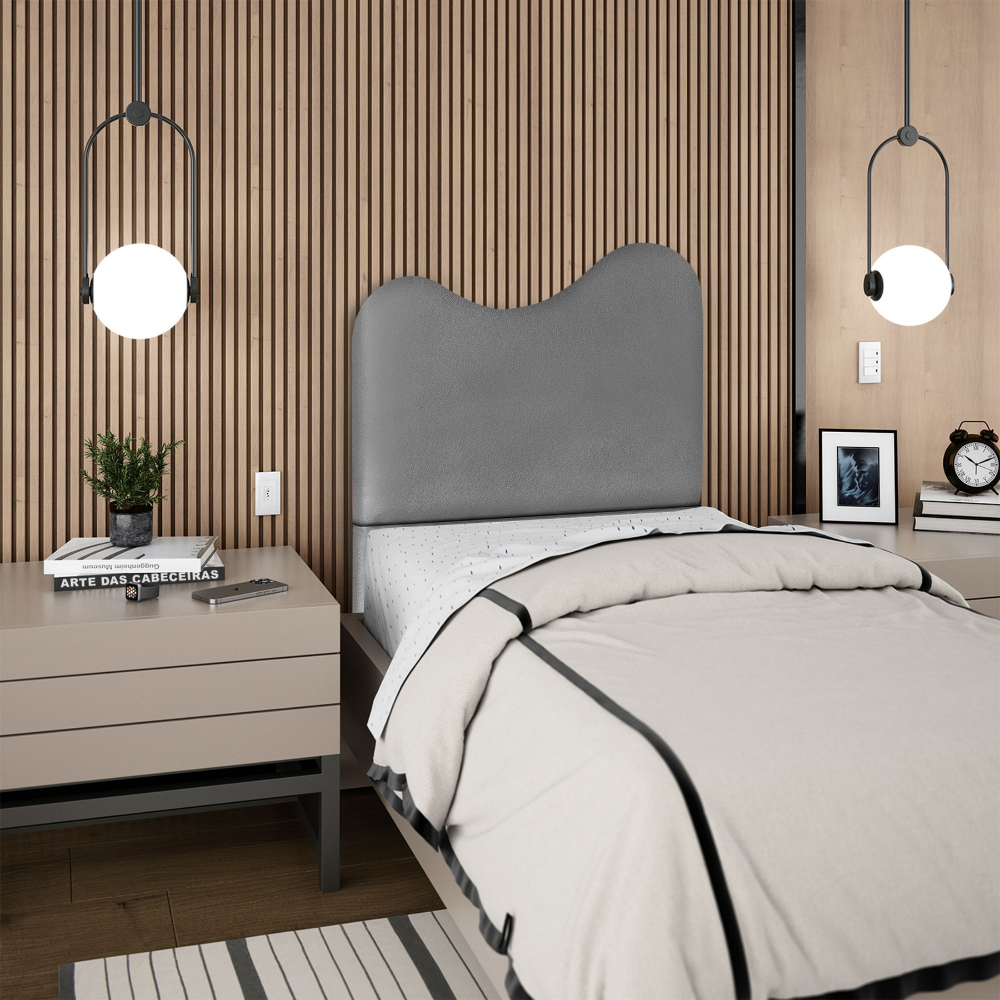Cabeceira Solteiro 90 cm Com Frame Selena Corino Cinza Artte