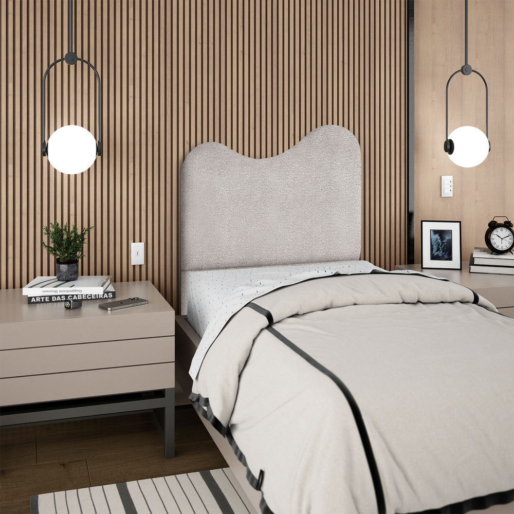 Cabeceira Solteiro 90 cm Selena Com Frame Linho Cinza Claro Artte