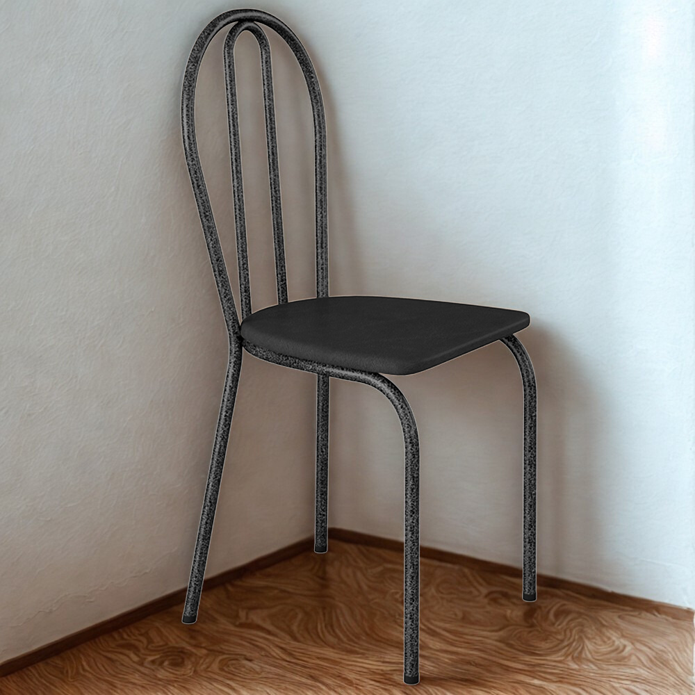 Cadeira Tubular America 004 Cromo Preto Assento Preto ARTEF