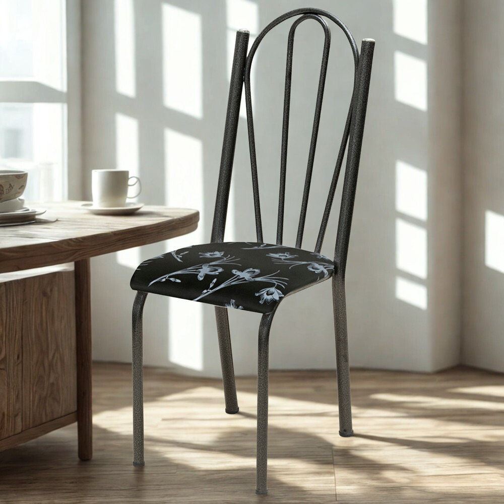Cadeira Tubular America 021 Cromo Preto Assento Preto Flor ARTEF