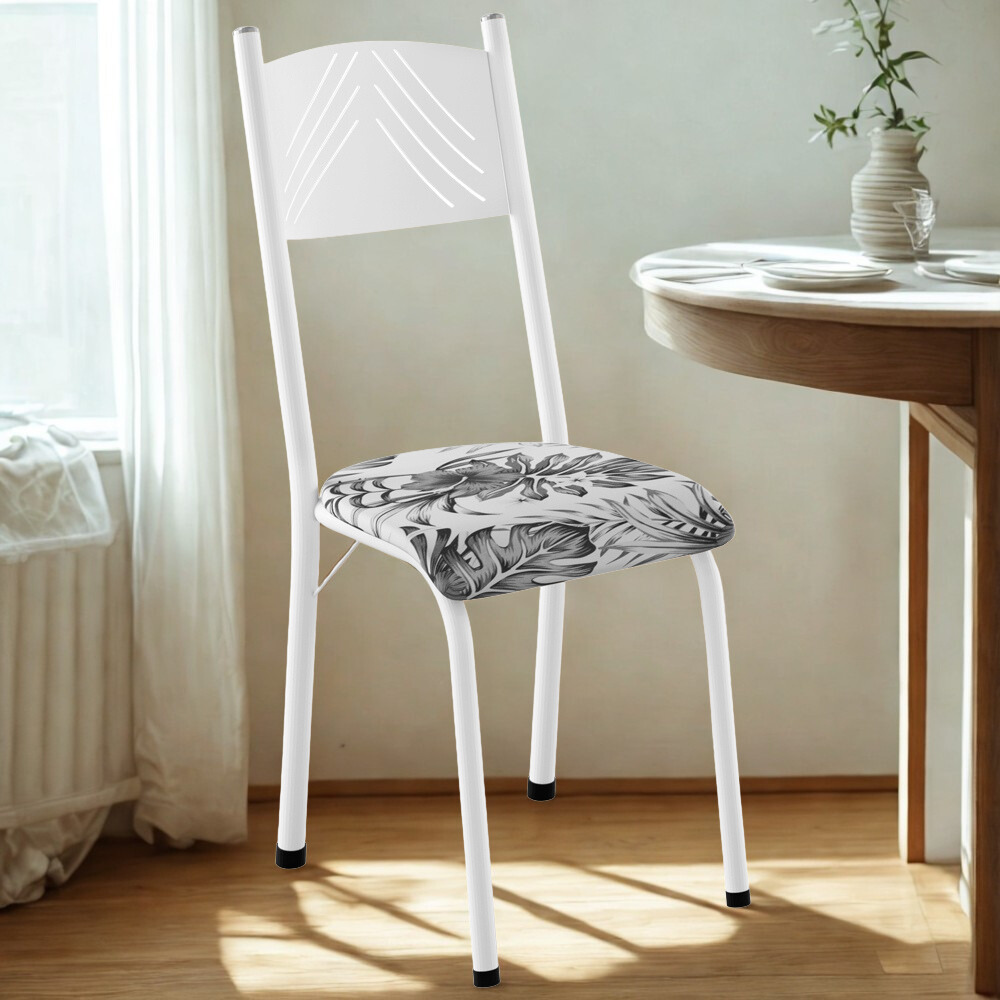 Cadeira Tubular America 051 Branco Assento Floral Cinza ARTEF