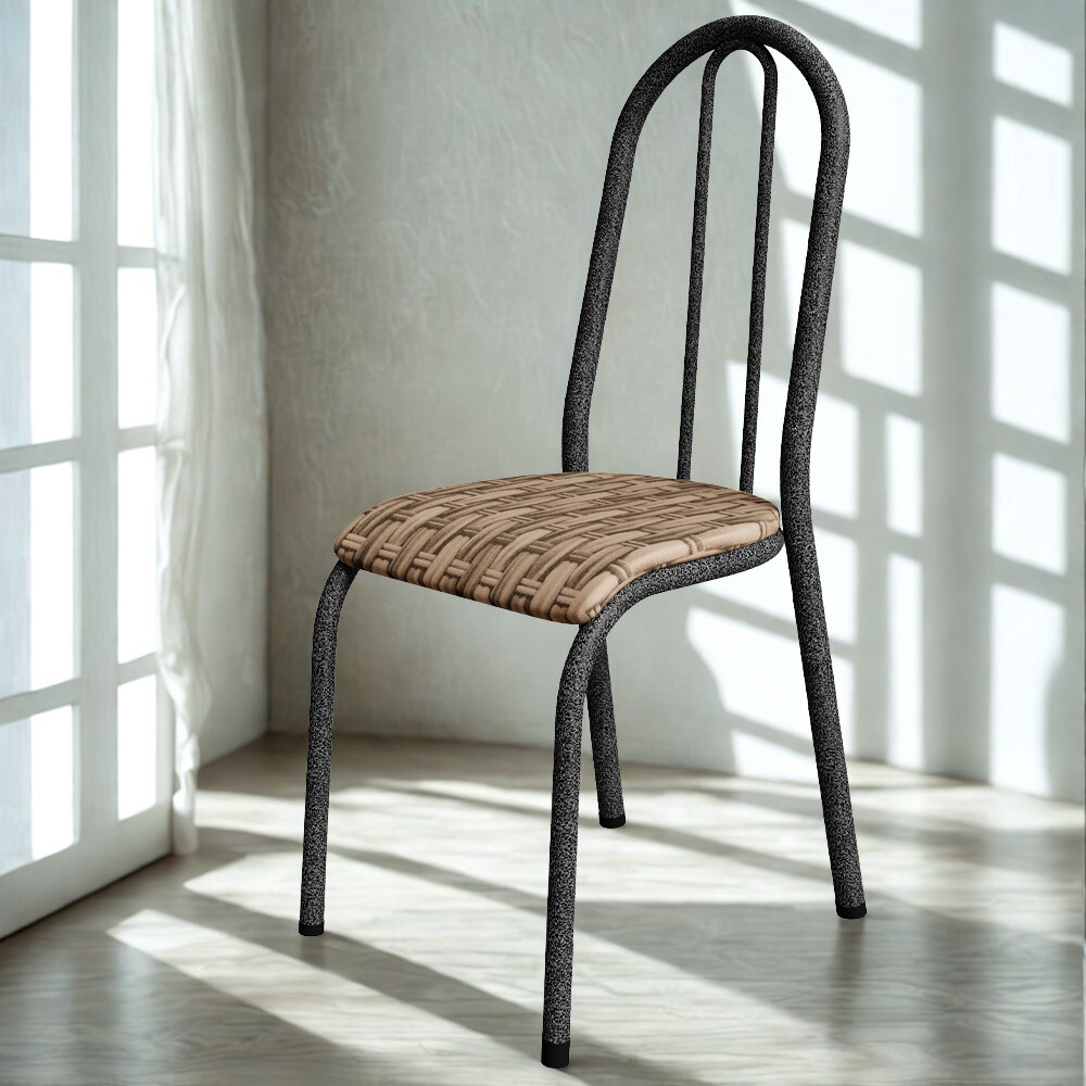 Cadeira Tubular America 056 Cromo Preto Assento Rattan ARTEF