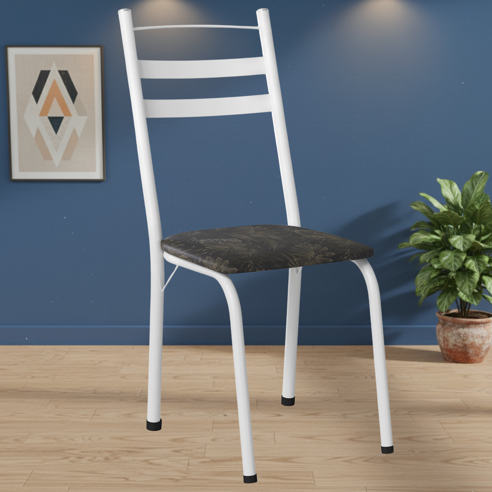 Cadeira Tubular America 061 Branco Assento Floral Dourado ARTEF