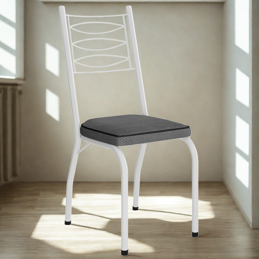 Sua sala de jantar mais aconchegante com a Cadeira Tubular 262. Estrutura em aço carbono (acabamento em pintura epóxi). Composta por encosto também em aço com detalhe vazado, assento com chapa de MDP, estofada com espuma D-23 (30 mm) e revestido em tecido sintético de fácil limpeza. Este produto será entregue em 1 volume.