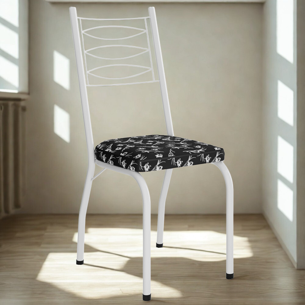 Cadeira Tubular Europa 262 Branco Assento Preto Flor ARTEF