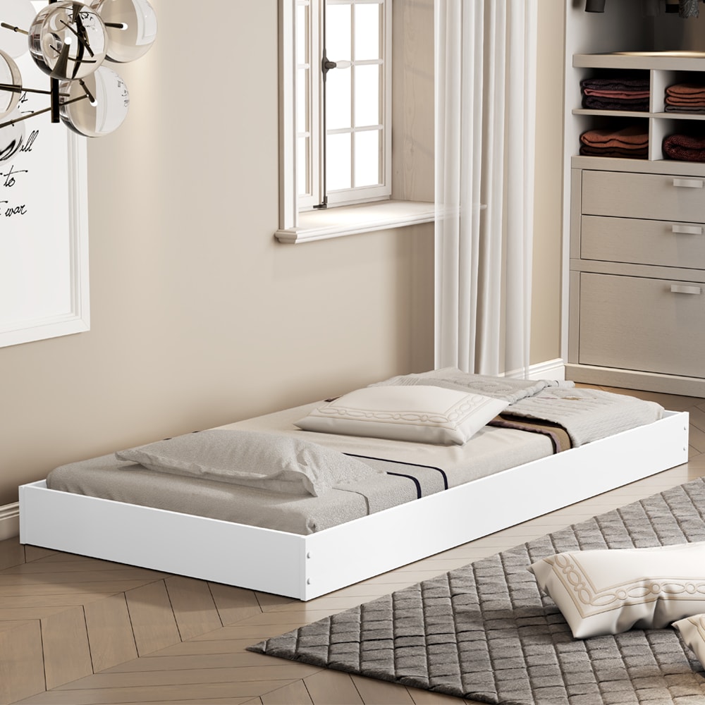 Cama Auxiliar Mili, elegante e versátil, perfeita para compor diferentes estilos com harmonia! Composta por estrutura 100% MDF de (12 mm) e acabamento UV. Possui um design moderno com cantos retos, estrados reforçados e rodízios, sendo ideal e indicada para colchão tamanho solteiro de 188X88 cm (COLCHÃO NÃO INCLUSO), suportando até 90 kg distribuídos sem impacto. NÃO ACOMPANHA OBJETOS NEM DEMAIS DECORAÇÕES. Este produto será entregue em 1 volume.