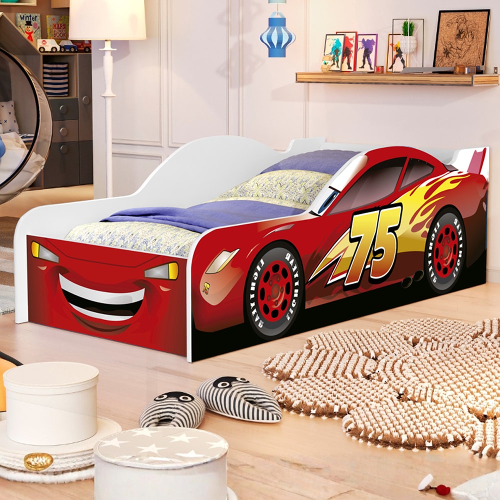 Mais conforto e alegria com a Cama Carros, levando os pequenos ao mundo de sonhos e imaginação! Composta por Estrutura 100% MDF de (12,15 mm) e acabamento interno em UV Brilhante. Conta com design em formato de carro com bordas arredondadas para maior segurança, grades de proteção e acabamento externo em Adesivo Temático anti risco. Possui também estrados reforçados sendo ideal e indicado para colchões de 190X90 cm (COLCHÃO NÃO INCLUSO) e suporta até 90 kg distribuídos. Este produto será entregue em 1 volume.