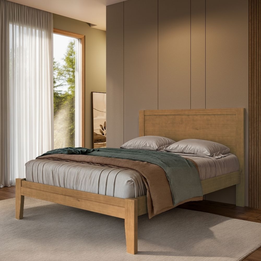 Eleve o momento de descanso com a Cama Casal Topazio, contemporânea e moderna, ideal para o seu momento de repouso. Sua estrutura é composta 100% em Madeira Maciça Taeda (presença calorosa e toque orgânico) com espessura de 16/25 mm (lateral 47 mm), lastros fixos de 25 mm e acabamento em pintura acetinada verniz PU e UV. É composta por painel de cabeceira (16 mm), pés retos e lastro de reforço para apoio (40 mm). Suporta até 200 kg, sendo ideal para colchões tamanho casal com 1,38 X 1,88 cm (COLCHÃO NÃO INCLUSO). Produto será entregue em 04 volumes.