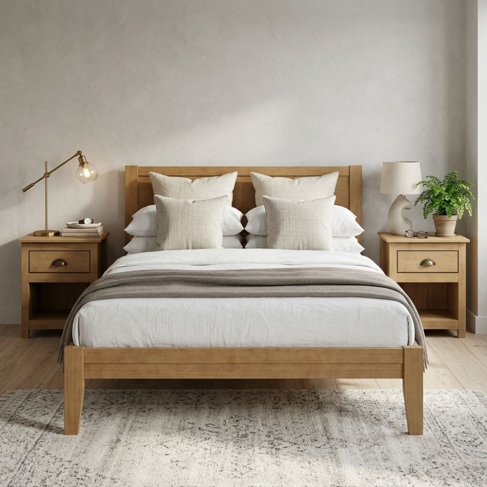 Cama Queen 2 Mesas de Cabeceira 1 Gaveta Madeira Macica Taeda Freijo Festra