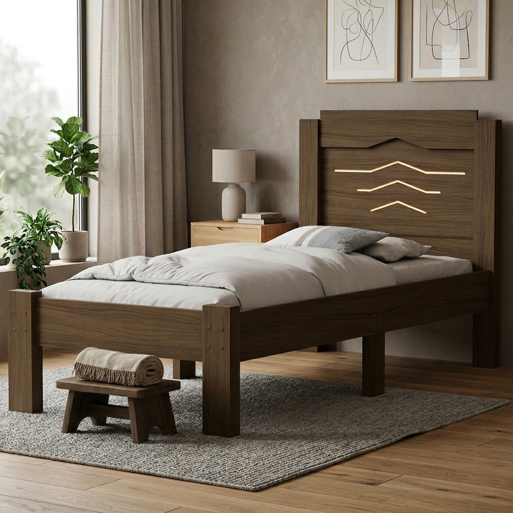 Cama Solteiro MDF 195X94 cm Sofia Castanho Off Decmade