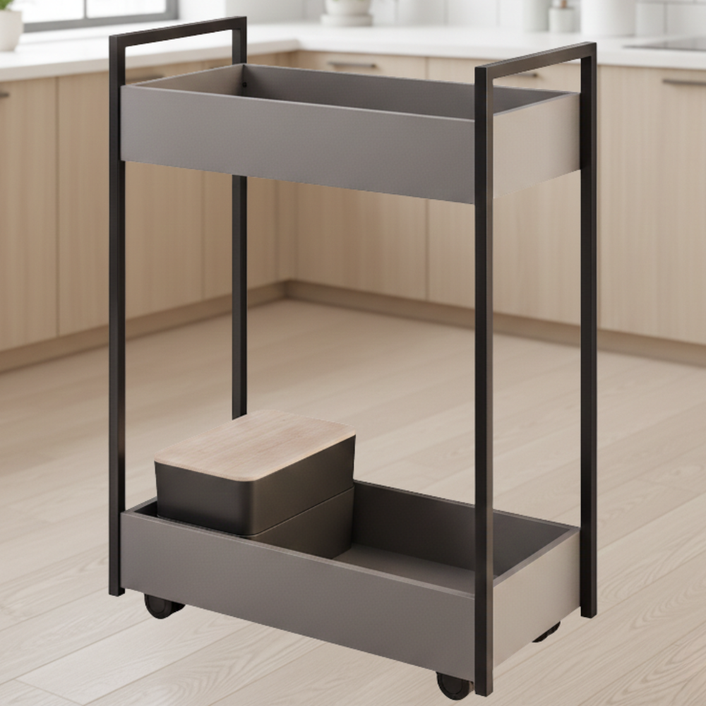 Carrinho Organizador Multiuso 2 Cestos BP Lara 70 cm Grafite Eratto Moveis