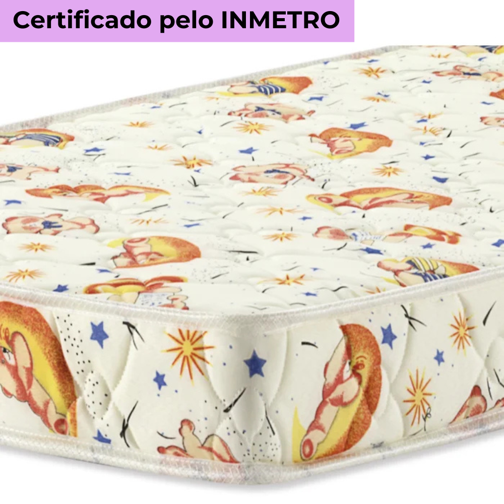 Colchão Infantil 9943, o conforto ideal para o sono do seu bebe. Composto espuma 100% poliuretano flexível, revestido em tecido poliéster com bordado contínuo, (densidade D18), com uma face em plástico que protege a superfície contra a penetração de líquidos, tratamento antialérgico e suporta até 40 kg. COMPATIVEL APENAS COM MINI CAMA. Este produto será entregue em 1 volume.