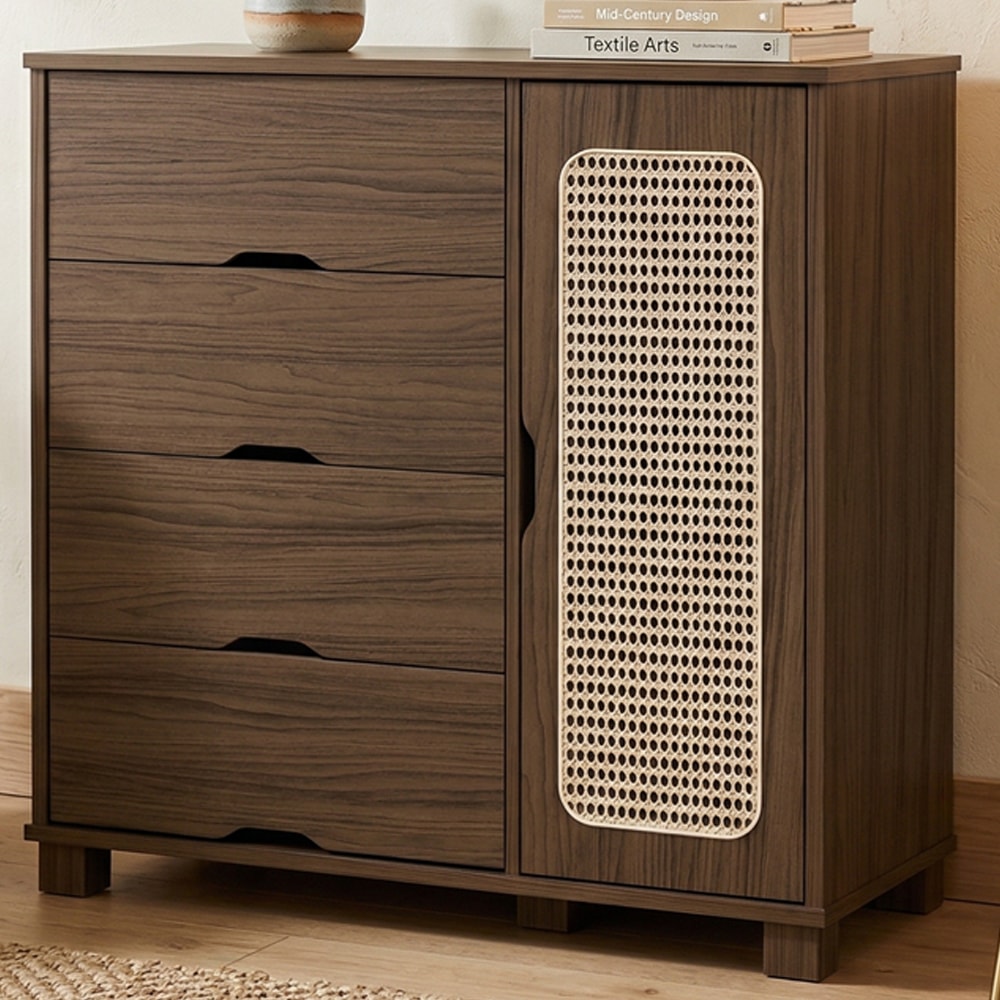 Comoda 4 Gavetas 1 Porta MDF 81 cm Clara Chocolate Decmade