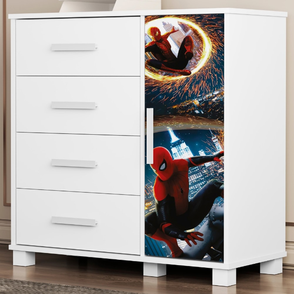 Cômoda Livia, criada para transformar o dia a dia em momentos cheios de alegria e fantasia! Estrutura 100% MDF de (03/12/15 mm) e acabamento verniz (brilho). Composta por design moderno conta com um tampo amplo e espaçoso, prateleira interna (suportando até 3 kg distribuídos), gavetas com corrediças telescópicas (suportando até 3 kg cada), porta com Adesivo Temático anti risco e dobradiças metálicas. Além de puxadores PVC. Este produto será entregue em 1 volume.
