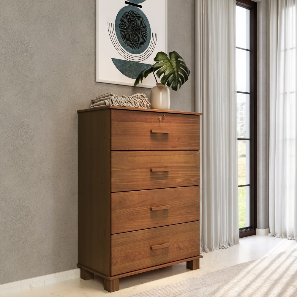 Cômoda 1138C, elegância e robustez que elevam o seu quarto e aprimoram sua rotina. Com estrutura 100% em Madeira Maciça Taeda de 13/14 mm (presença calorosa, toque orgânico) e acabamento em pintura brilho 10%. Inclui gavetas com corrediças telescópicas (dessas, a superior conta com fechadura por chave), puxadores em madeira maciça e tampo reforçado. Além de pés retos também em Madeira Maciça (65 mm). Produto será entregue em 01 volume.