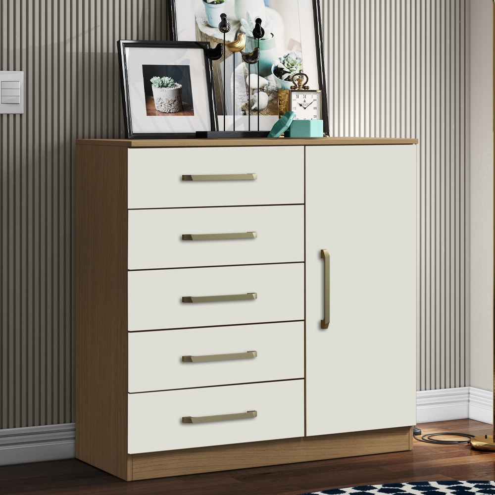 Comoda 5 Gavetas 1 Porta 91 cm Milao Atacama Off White ARMoveis