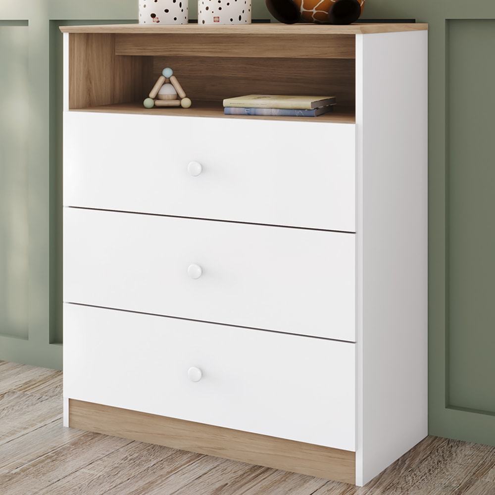 Cômoda Infantil Magia, o móvel ideal para o quarto das crianças! Produzida em MDP 12/15mm (fundo MDF 3mm) com pintura UV texturizada. Conta com gavetas com corrediças metálicas para abertura suave, nicho superior e puxadores em ABS e tampo chapéu com design soft. Produto será entregue em 01 volume.