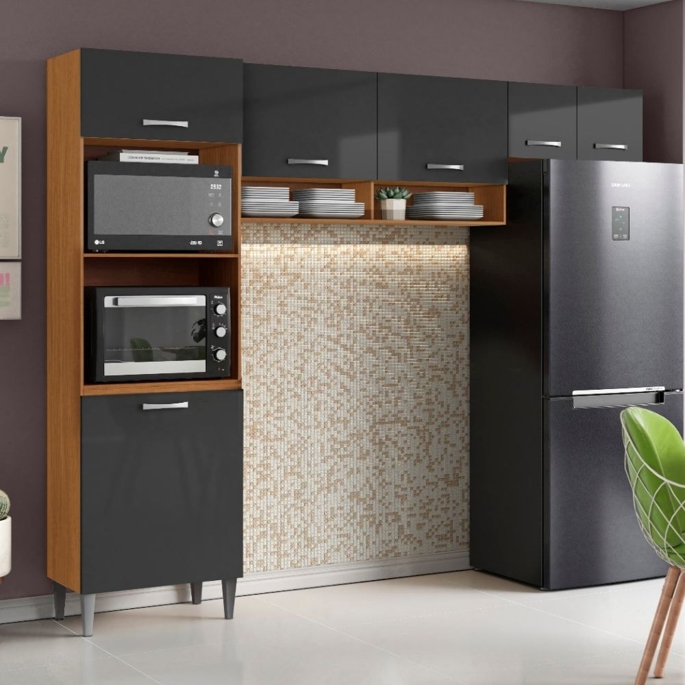 Cozinha Compacta 6 Portas 250 cm MDP Atenas Cinamomo Grafite ARMoveis