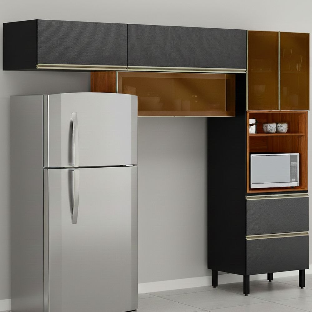 Cozinha Modulada 3 Pecas 270 cm Vidro DP2701 Nogueira Carbono Prime Demartez