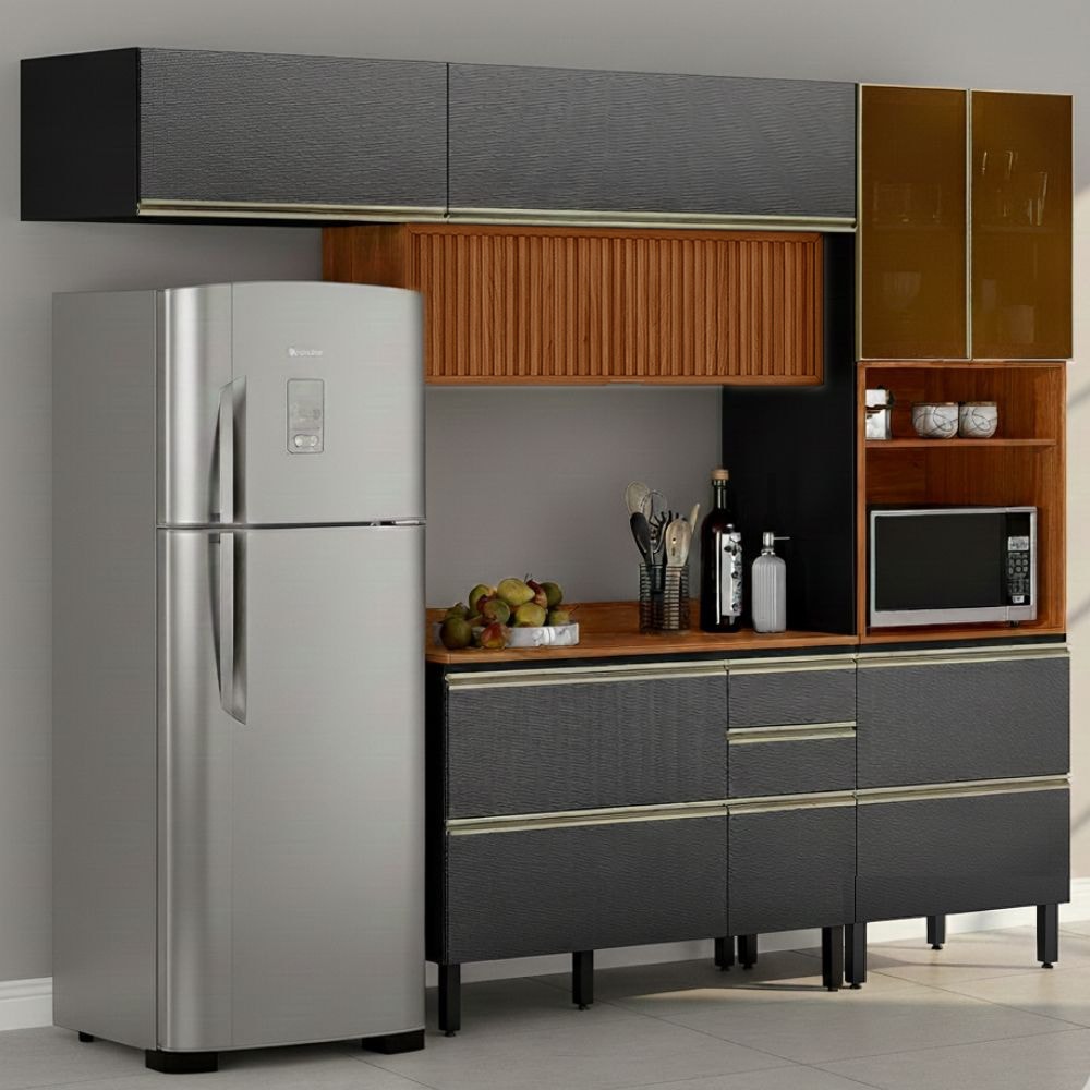 Cozinha Modulada 4 Pecas 270 cm Ripado DP2703 Nogueira Carbono Prime Demartez