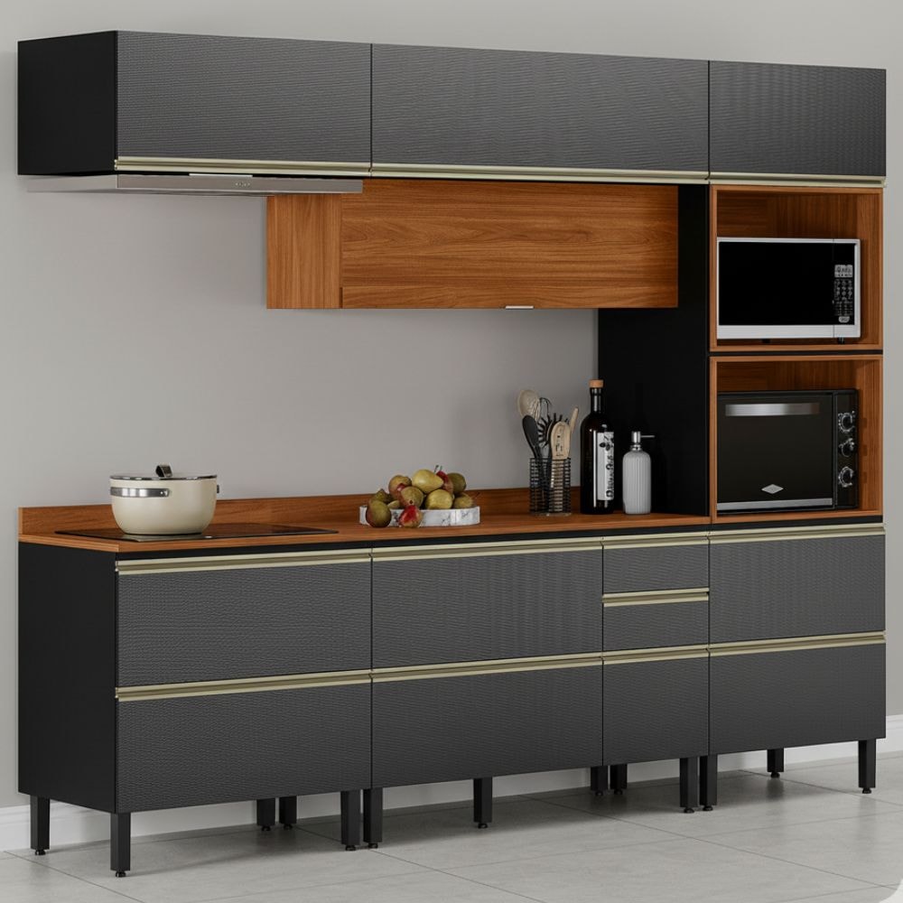 Cozinha Modulada 5 Pecas 270 cm MDF DP2706 Nogueira Carbono Prime Demartez